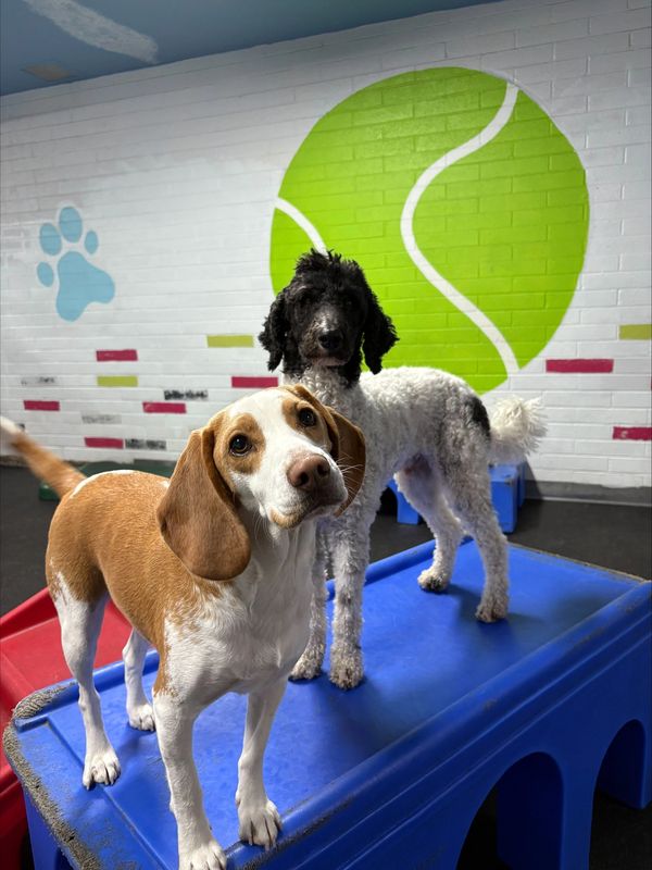 We are cage free 24 hours a day. We are not a canine storage company like others, we care for them as family members in an safe, open, loving environment.
